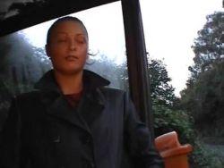 Die fickgeile Hellhaarige fickt sich die Pussy im Wald selber