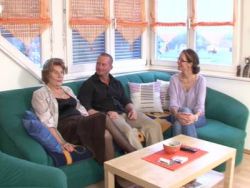 Natürliche Hausfrau bläst ihm den prallen Pimmel