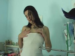 Jugendliche Hure mit kleinen Titten erkundet eine Muschi