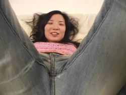 Asiatische Frau steckt hemmungslos ihren Fingern in ihre unbehaarte Lustgrotte