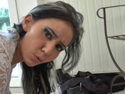 Reife Frau mit großen Titten fickt sich die glatte Votze