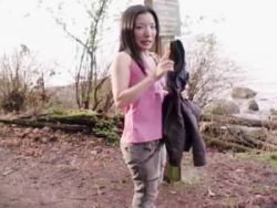 Unter freiem Himmel hat die Asia Schlampe den zügellosen Solofick