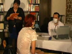 Beim Frauenarzt wird die Vagina der Nonne von beiden Männern richtig untersucht