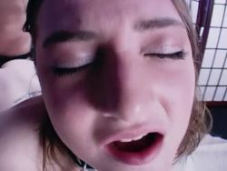 Mit einem dicken StrapOn nagelt die braunhaarige Lesbe ihre Freundin wund