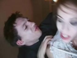 Versaute Ficksau wird von zwei Lümmeln gleichzeitig gevögelt