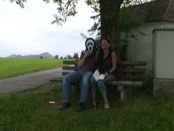 Geiler Outdoor Oralsex mit einem maskierten Mann