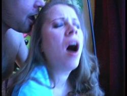 Bis zum Anschlag wird der große Pimmel in den engen Rachen getaucht bei einem tiefen Kehlenfick