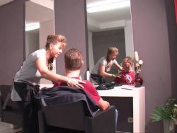Die geile Friseuse lutscht ihrem Kunden den Schwanz
