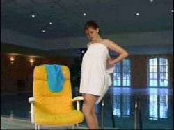 Die heiße Blonde bewegt sich lasziv vor der Kamera