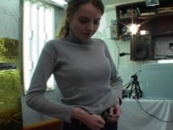 Schlanke Schlampe mit dicken Hupen wird gerammelt