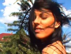 Jungluder wird im Freien in die behaarte Fotze gefickt