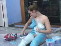 Das süße Teenweib reibt sich den vollen Body mit Lebensmitteln ein