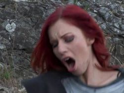 Unter freiem Himmel wird die Bitch von dem Hengst durchgefickt