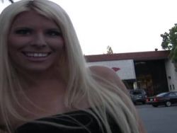 Blondierte Schlampe lässt sich die unbehaarte Fotze ficken