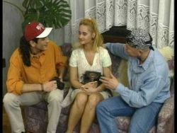 Blonde Schlampe mit einer struppigen Pussy bekommt eine Ladung Wichse