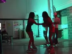 Zwei wunderschöne jugendliche Schlampen saugen zwei Schniedel