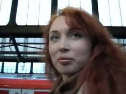 Heißes rotes Flittchen lutscht scharfen Dick im Zug