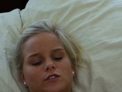 Schöne versaute Blondine fingert eine feuchte Vagina