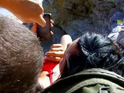 Rasierte Fotze wird draußen von dickem Penis durchgenudelt