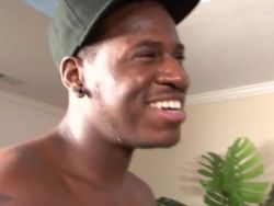 Der dicke schwarze Lümmel wird bis in die Kehle der Fickschlampe geschoben