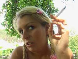 Ein Mann nagelt Outdoor eine lüsterne Blondine mit nasser Pussy