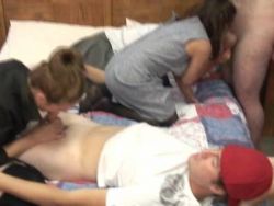 Hobbyschlampen saugen die prallen Pints beim Gruppensex