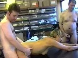 Der eine Kerl spritzt ihr in den Mund, während der andere ihren Allerwertesten besamt