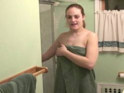 Ihre dicken Euter cremt die junge Hure verführerisch ein bevor sie sich die Muschi massiert