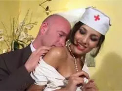 Steifer Lümmel wird von spitzer Krankenschwester geblasen