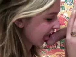 Williges Teenie mit einer Haarfotze lutscht den Pint