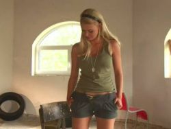 Unerfahrene verdorbene Schlampe zeigt ihre nasse Muschi
