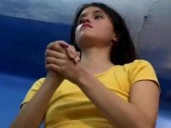 Die nicht so großen Brüste werden von dem süßen Mädel gestreichelt