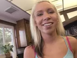 Mit dem schwarzen Gummipenis besorgt es sich die geile blonde Schlampe dolle